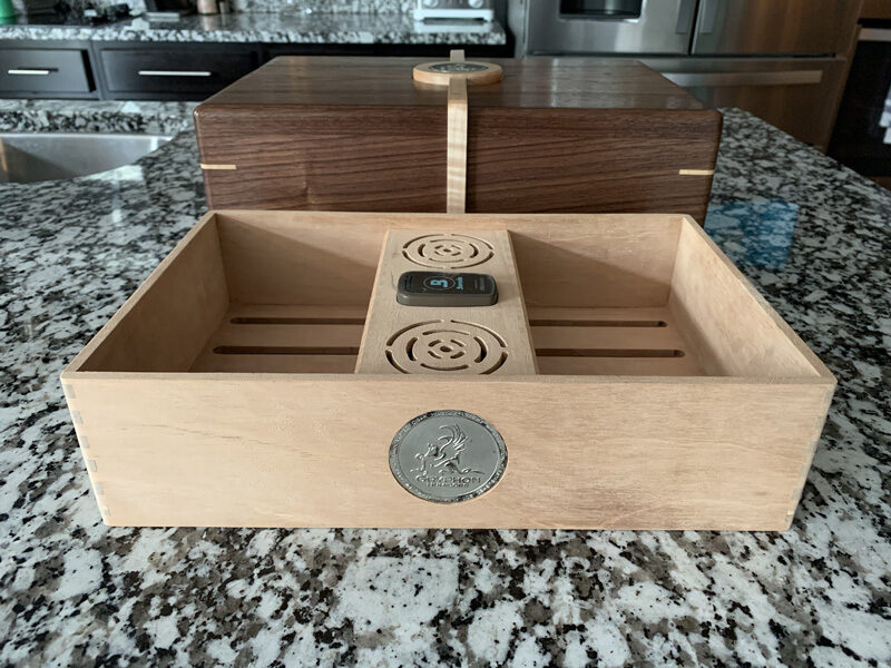 The Merlin #016 Primary Wood Walnut (Black) Secondary Wood Maple (Curly) Status Sold Location St. Louis, MO Build a Similar Cigar Humidor Other humidors that use: Walnut (Black) Maple (Curly) Other Completed Humidors The Galahad #021The Merlin #006The Camelot #020The Lancelot #033The Camelot #014The Lancelot #027 More Completed Humidors